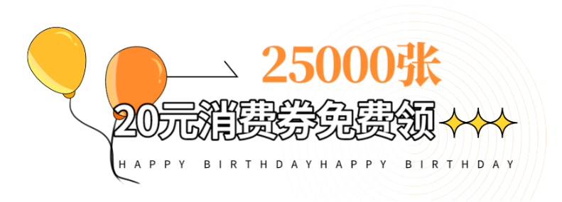 25000张20元的「生日蛋糕券」,随领随得,数量有限,领完即止。
